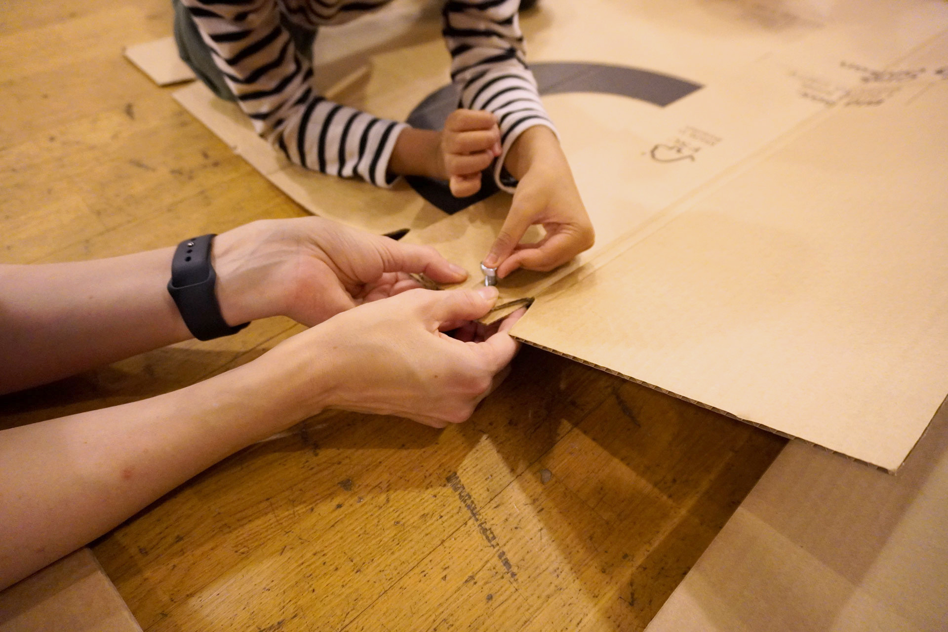 Med kartong som huvudmaterial uppmanade vi barnen att bygga ett rymdskepp.