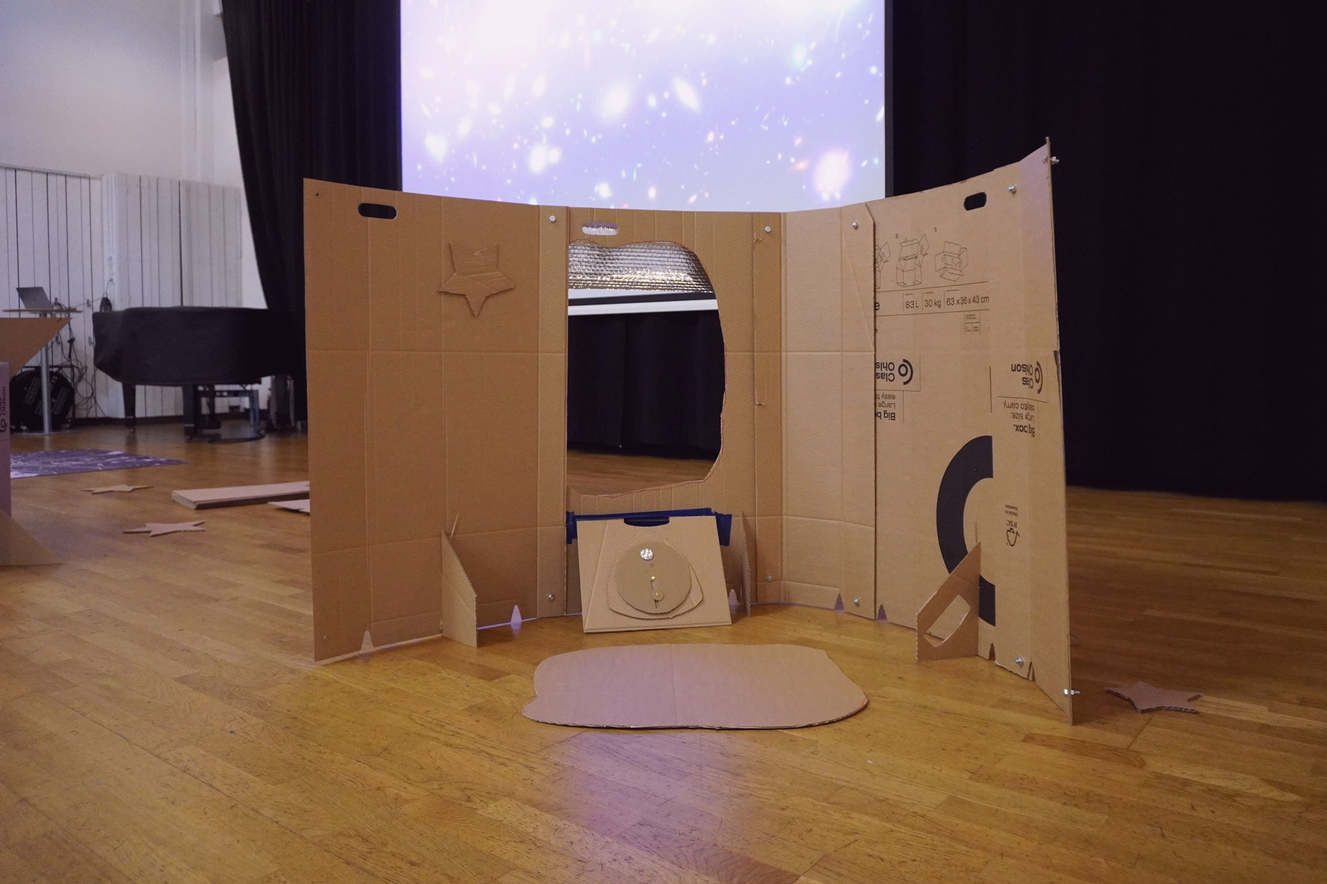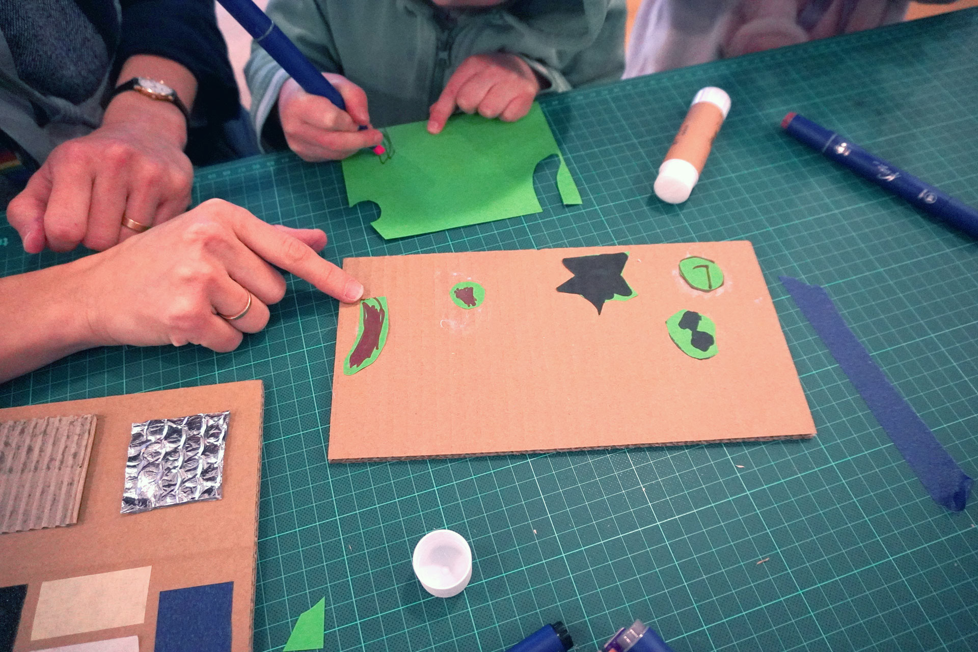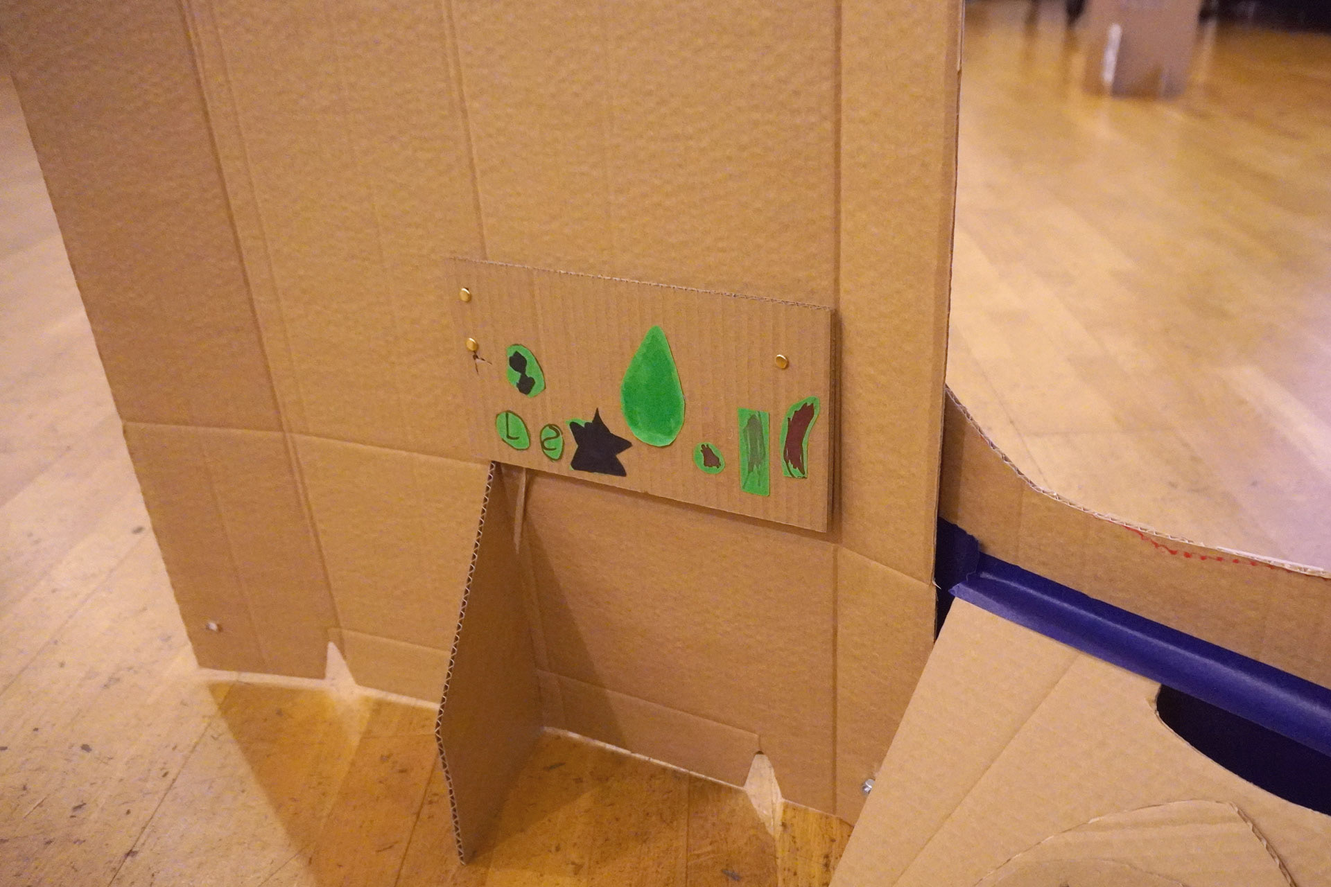 The children at this workshop did not understand what "control panel" meant, but the moment we explained that it is the board with all the buttons and different functions, they got to work and put their one-hundred thoughts onto paper — in this case cardboard.