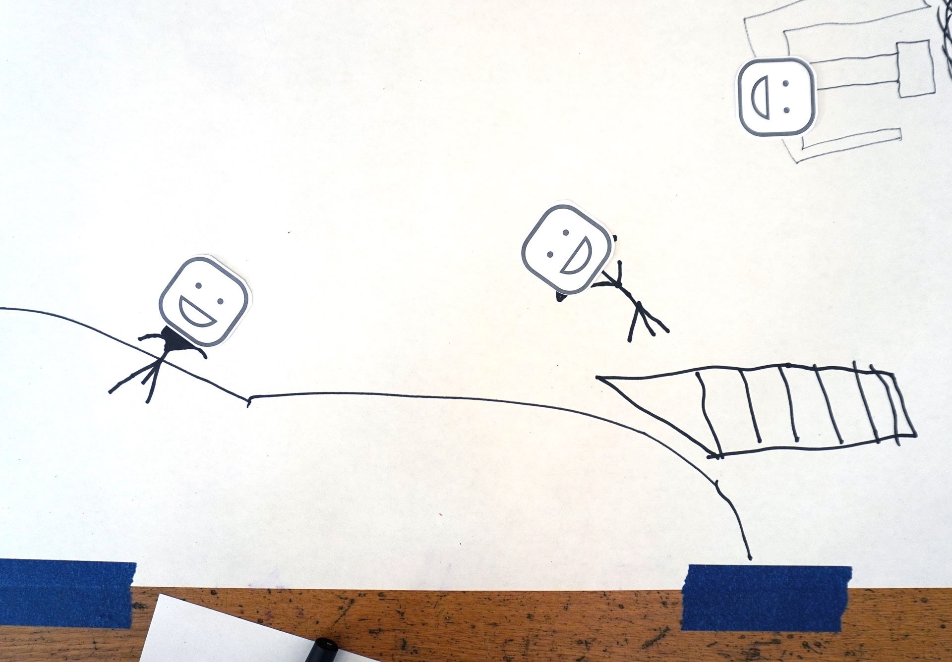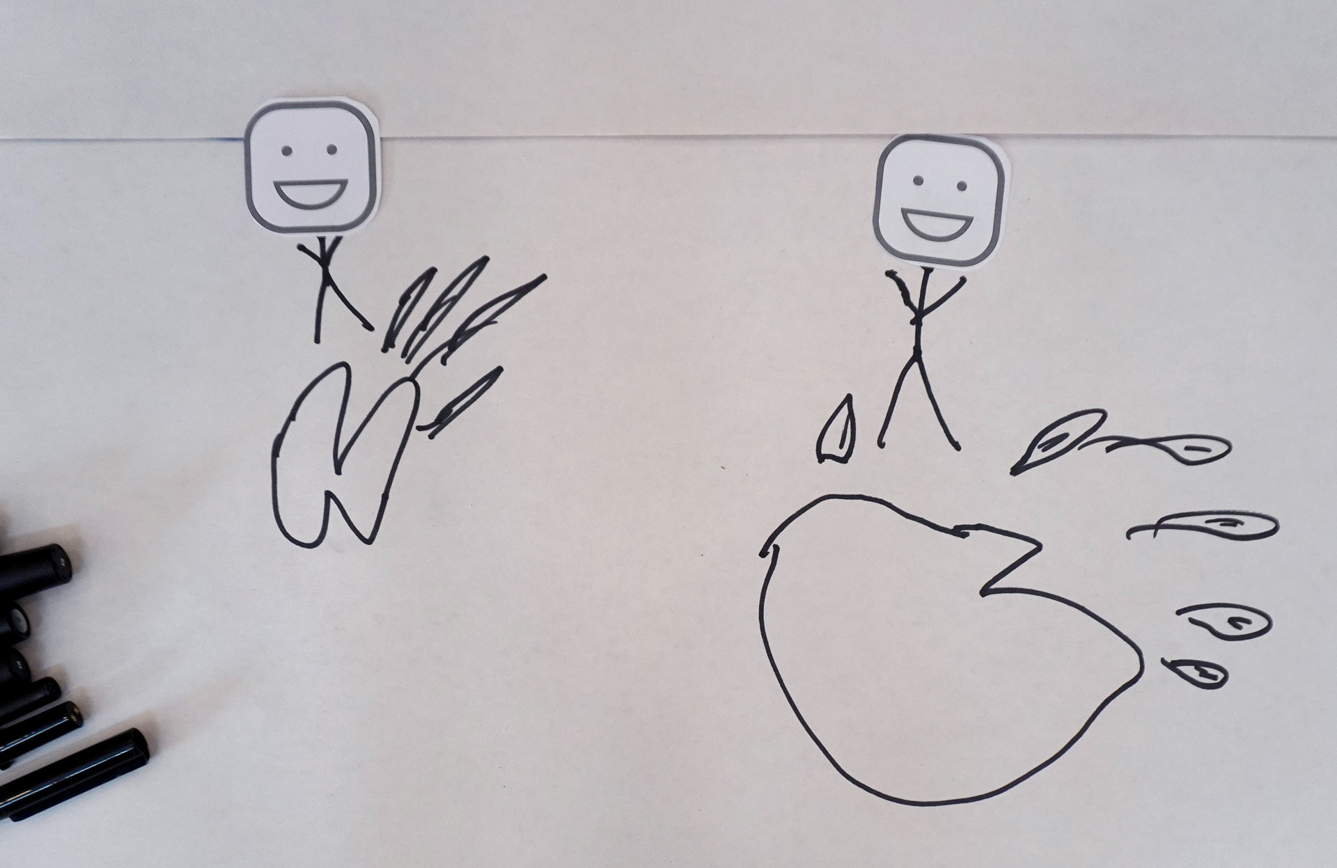 When we originally introduced describing places we used words, such as "active", "calm", "somewhere fast", "a slow place", etc. Realizing that it is difficult for children to understand these concepts, or to name their feelings about a place, we iterated the activity and used emoticons. Children could then more intuitively choose and place emoticons on their drawings, to describe how they feel when they are at those places.